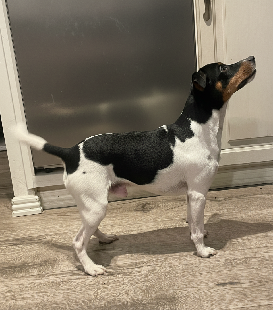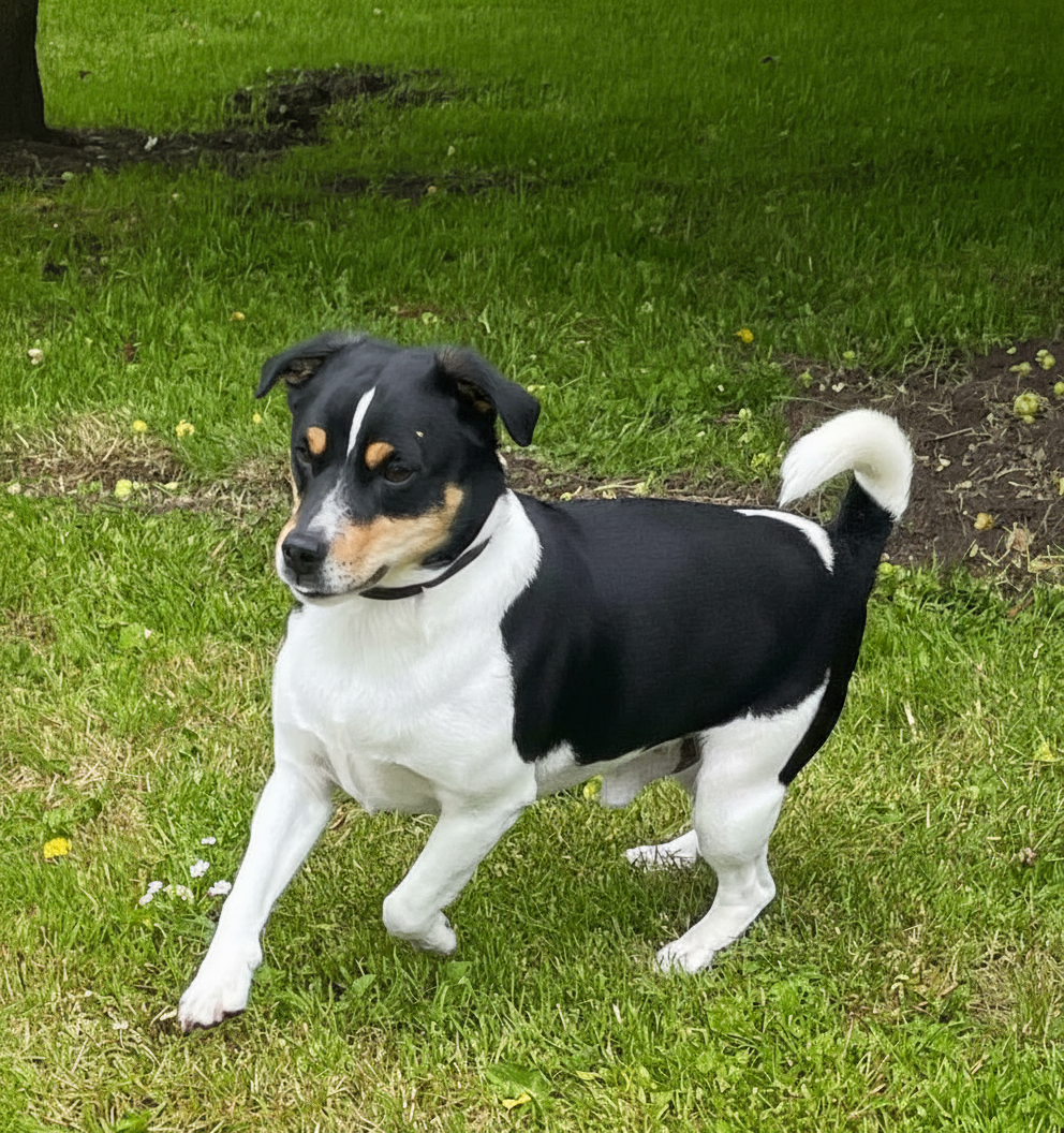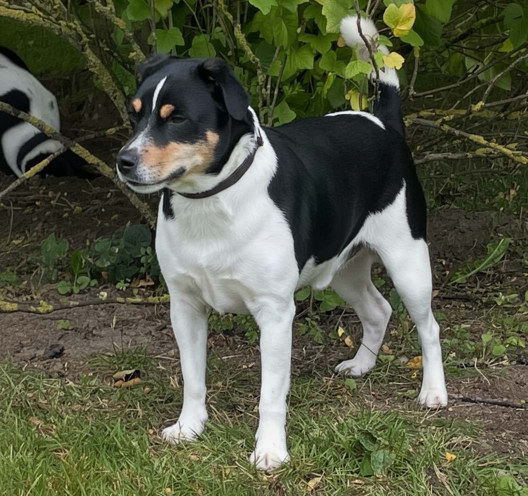 Lotto bor hos os og bidrager dagligt til smil og underholdning til husets børn og hvalpe, han er bare en hanhund med krudt i og gør aldrig